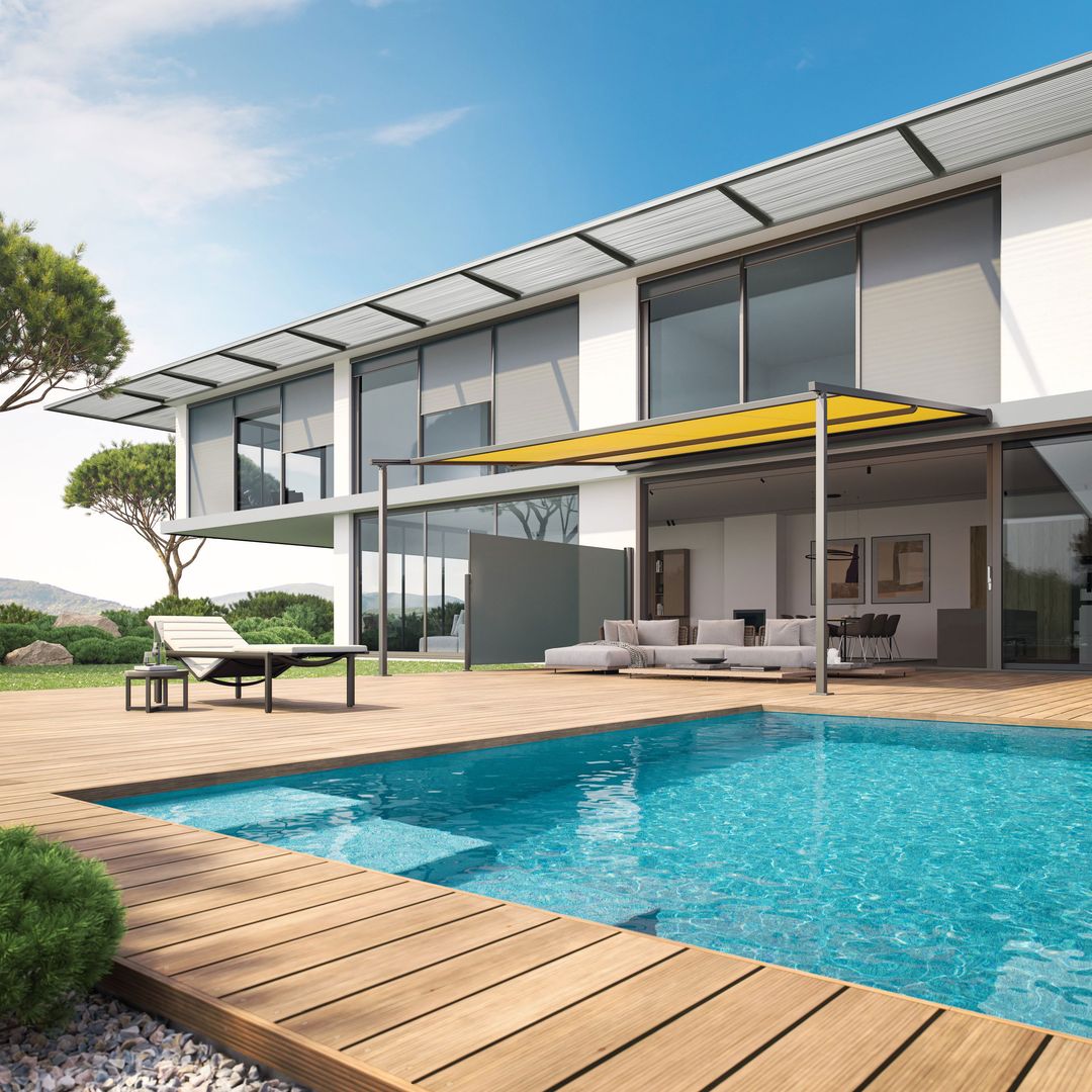 - Seitenmarkisen dienen als idealer Sichtschutz für Terrasse, Garten und Pool. Sie können einfach und unkompliziert installiert und bei Bedarf schnell ein- und ausgezogen werden.