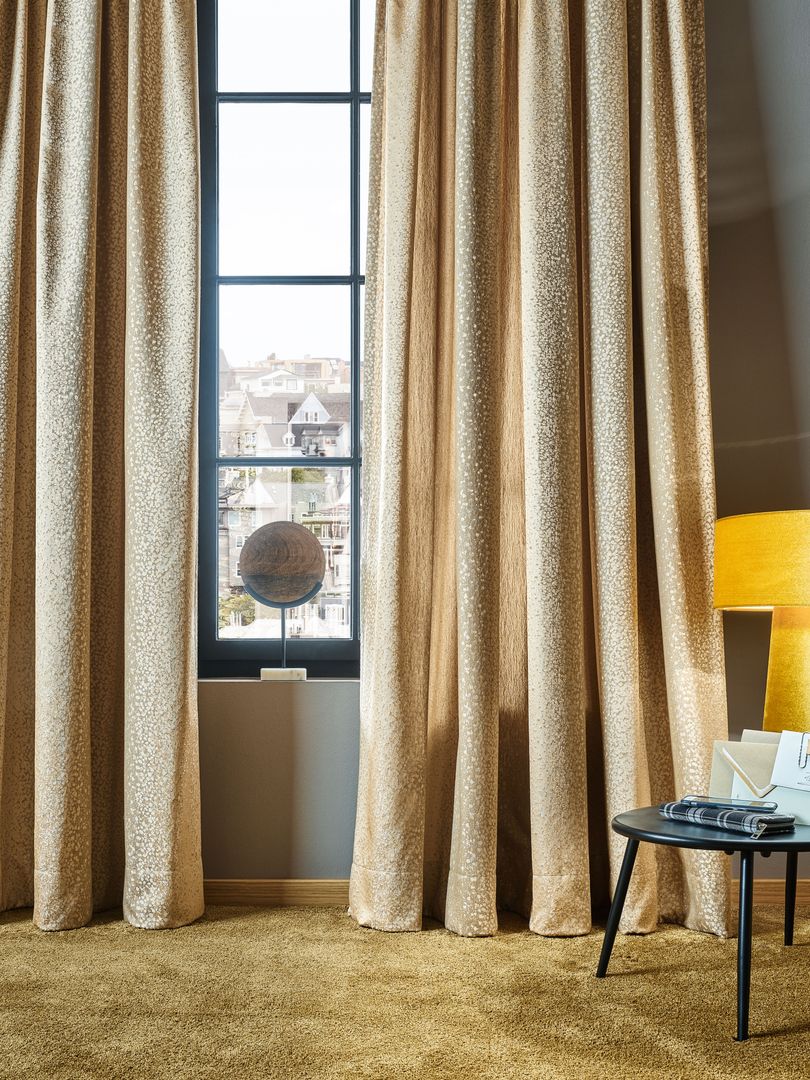 Bunt, uni oder opulent? Je nach Einrichtungs- und Stylekonzept sollten sich die Vorhänge entweder dezent im Hintergrund halten oder eine „tragende Rolle“ spielen. Bunte Wände brauchen einfache Vorhänge und umgekehrt. Besonders schön wirken durchgängige Farbtöne und -harmonien, die sich vom Vorhang über die Wände bis zu den Möbelstoffen ziehen.