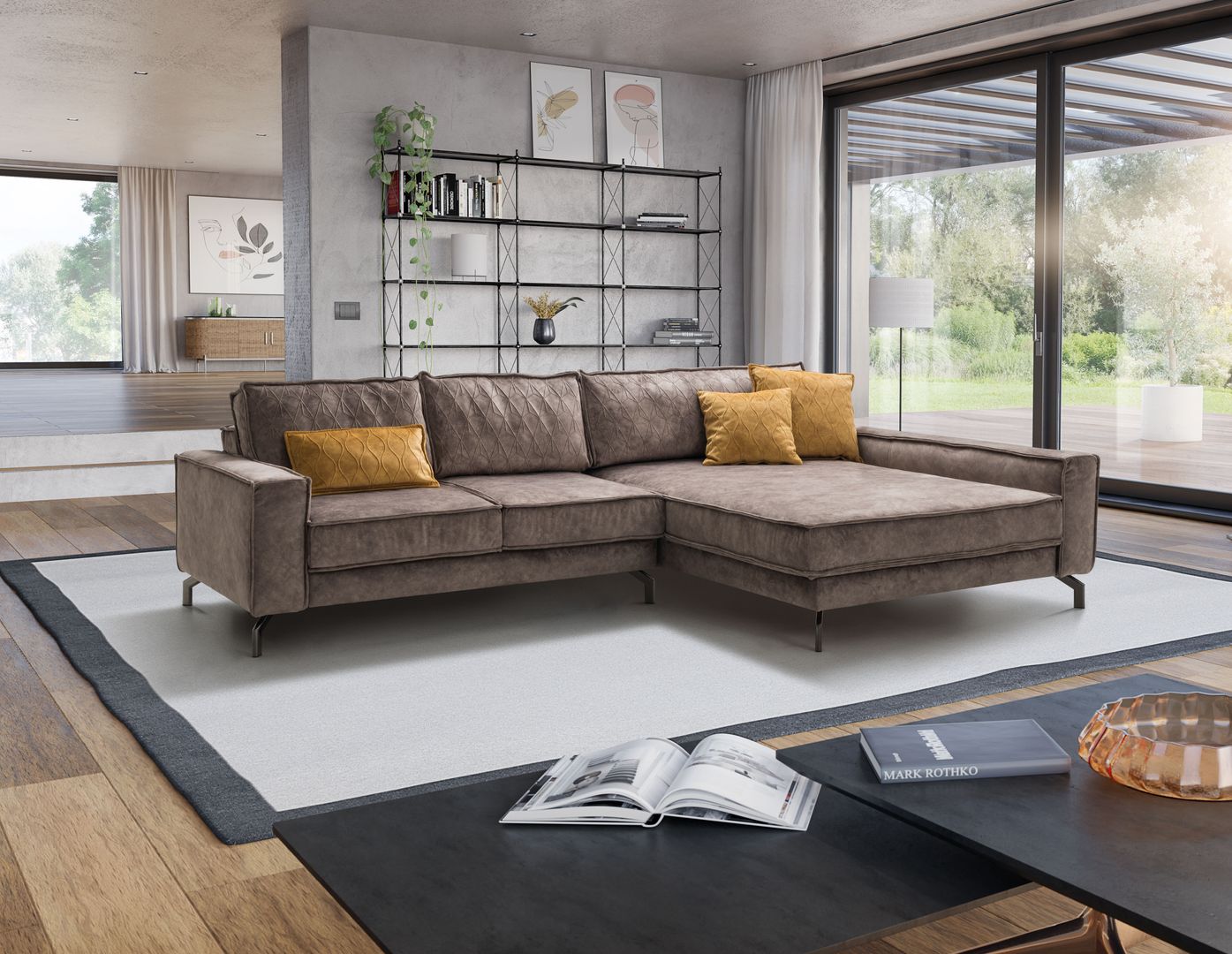 Wohnlandschaften hier, hochbeinige und grazile Sofas als Blickfang da. Auch das Auge wohnt mit. Deshalb schaffen zwischendurch oft schwarze, aber auch glänzend silberne oder farbig lackierte Metallgestelle farbige und designtechnische Kontraste – und wirken dadurch platzsparend und dennoch sehr elegant.